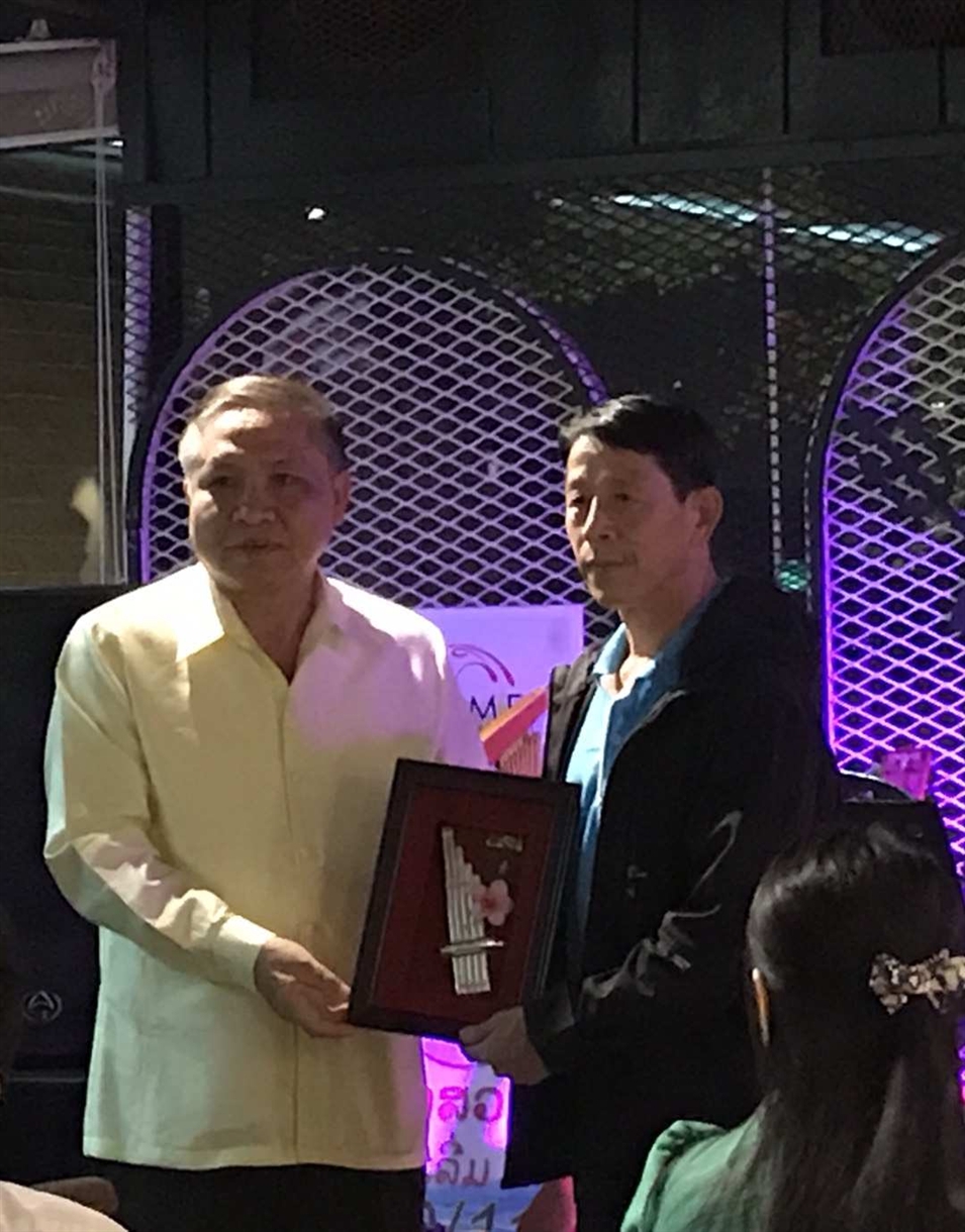 11號(hào)晚上老撾國(guó)立大學(xué)校長(zhǎng)宋西·諾潘賽為劉傳書老師、王慶陽(yáng)老師頒發(fā)紀(jì)念品,表示對(duì)兩位老師的感謝,感謝兩位老師對(duì)老撾國(guó)立大學(xué)的支持與幫助,并希望兩位老師以后能常來(lái)國(guó)立大學(xué)交流訪問(wèn)。