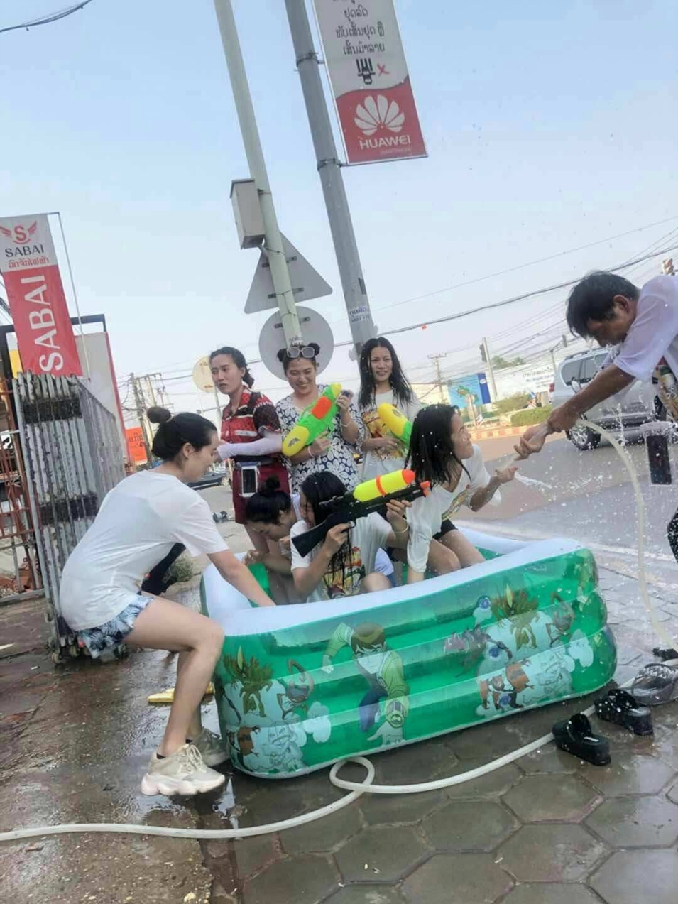 潑水節(jié)的那一天,老撾的街道是這樣的: